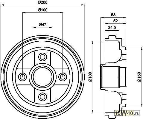 | Общ. высота торм. барабана [мм] | 63 |