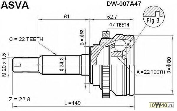 ШРУС наружный AveoI/AveoII 1.4 (все)/Aveo 1.2 DOHC 84 л.с. ABS 47 (22 внеш. Х 22 внут.)