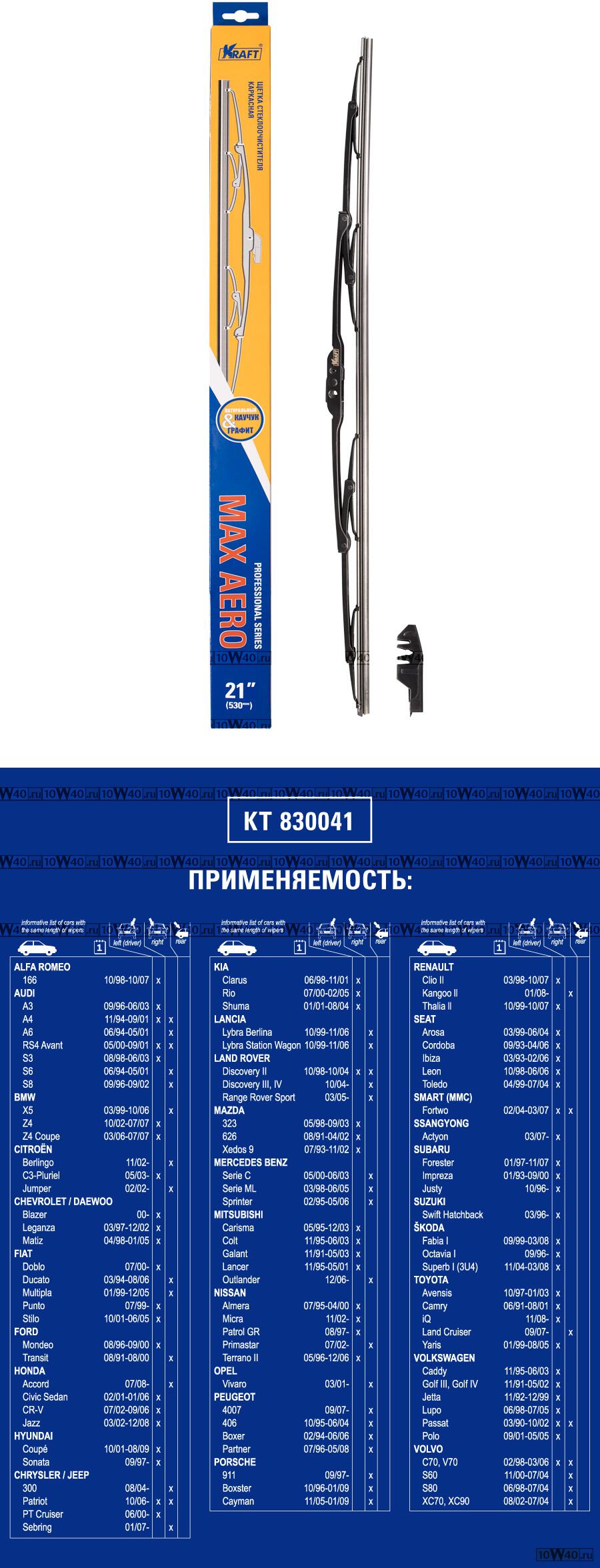 | KRAFT | KT 830041 | | Щетка стеклоочистителя каркасная 530мм (2 адаптера) |