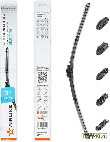 | AIRLINE | AWBBS001 | | щетка стеклоочистителя бескаркас silicone 330мм (13) 5 адаптеров (awbbs001) |
