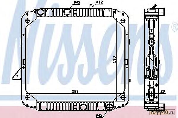 Описание SH | радиатор системы охлаждения пластик / медь 510x599x26 \mb 1114ak / 914ak дв. om366 |