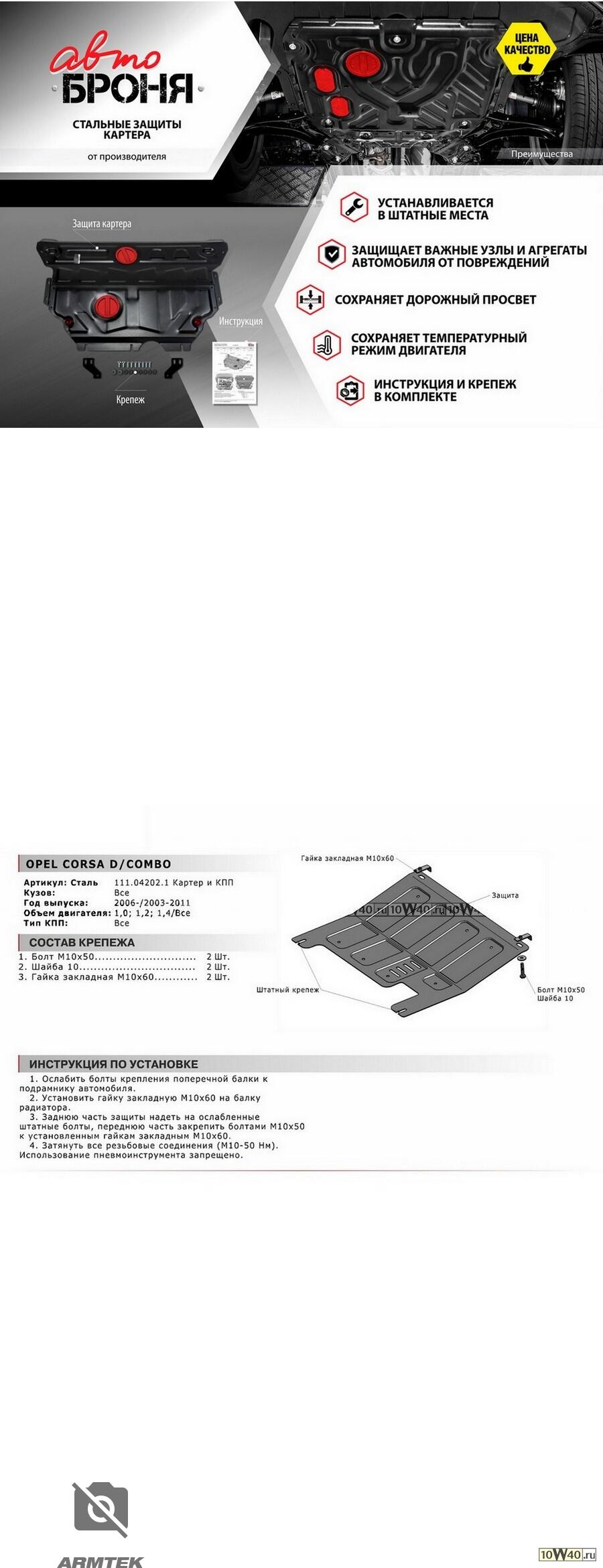 | защита картера+кпп сталь 1.8мм\ opel combo c 03-11 / corsa d 1.0 / 1.2 / 1.4 06-14 |