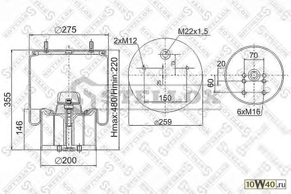 | Описание SH | пневмоподушка со стак.940mb h423 2шп.m12смещ.25.1отв.штуц.m22.поршень пластик b |