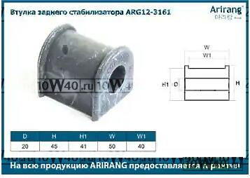 | ARIRANG | ARG12-3161 | | Втулка стабилизатора |