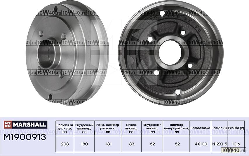 ТОРМОЗНОЙ БАРАБАН ЗАДН. RENAULT LOGAN I 04- / CLIO I, II 96- / TWINGO I 96- (M1900913)