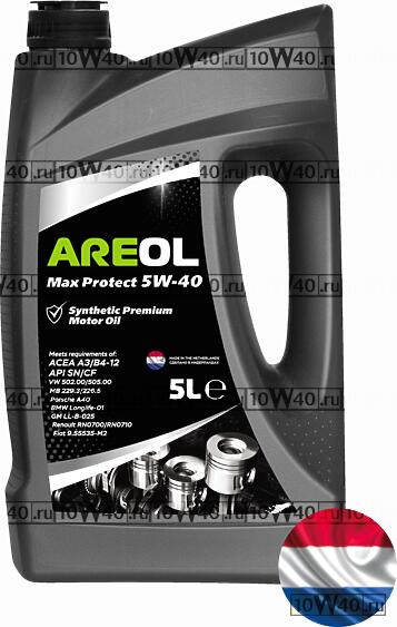 areol max protect 5w40 (5l) масло моторное синт.\ acea a3 / b4, api sn / cf, VW 502.00 / 505.00, mb 229.3