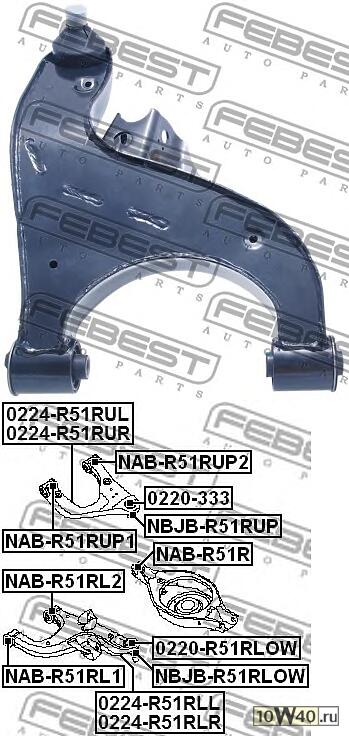 Деформация поперечины подвески в зоне передних болтов крепления осей нижних рычагов.