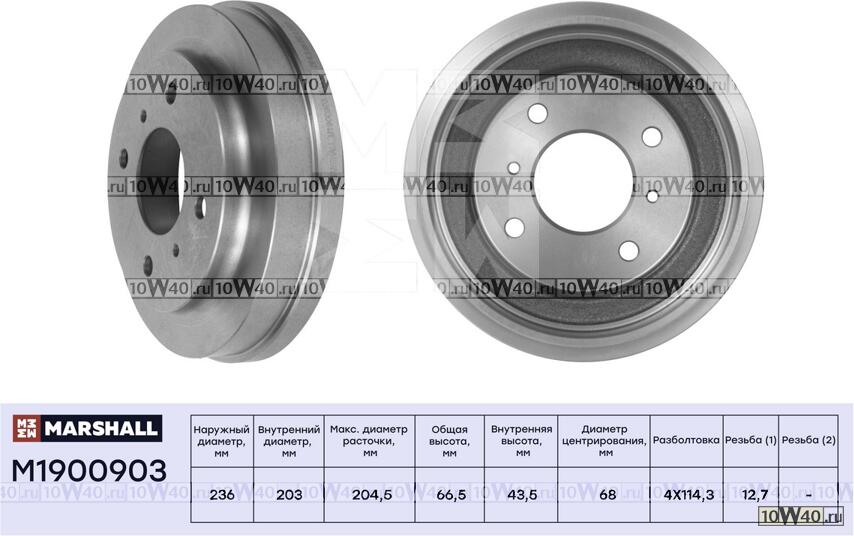 | MARSHALL | M1900903 | | ТОРМОЗНОЙ БАРАБАН ЗАДН. NISSAN ALMERA II (N16) 00- / PRIMERA II (P11) 99- (M1900903) |