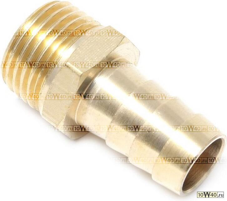 Штуцер металлический прямой, резьба 1/2(M) х елочка 16 мм, латунь