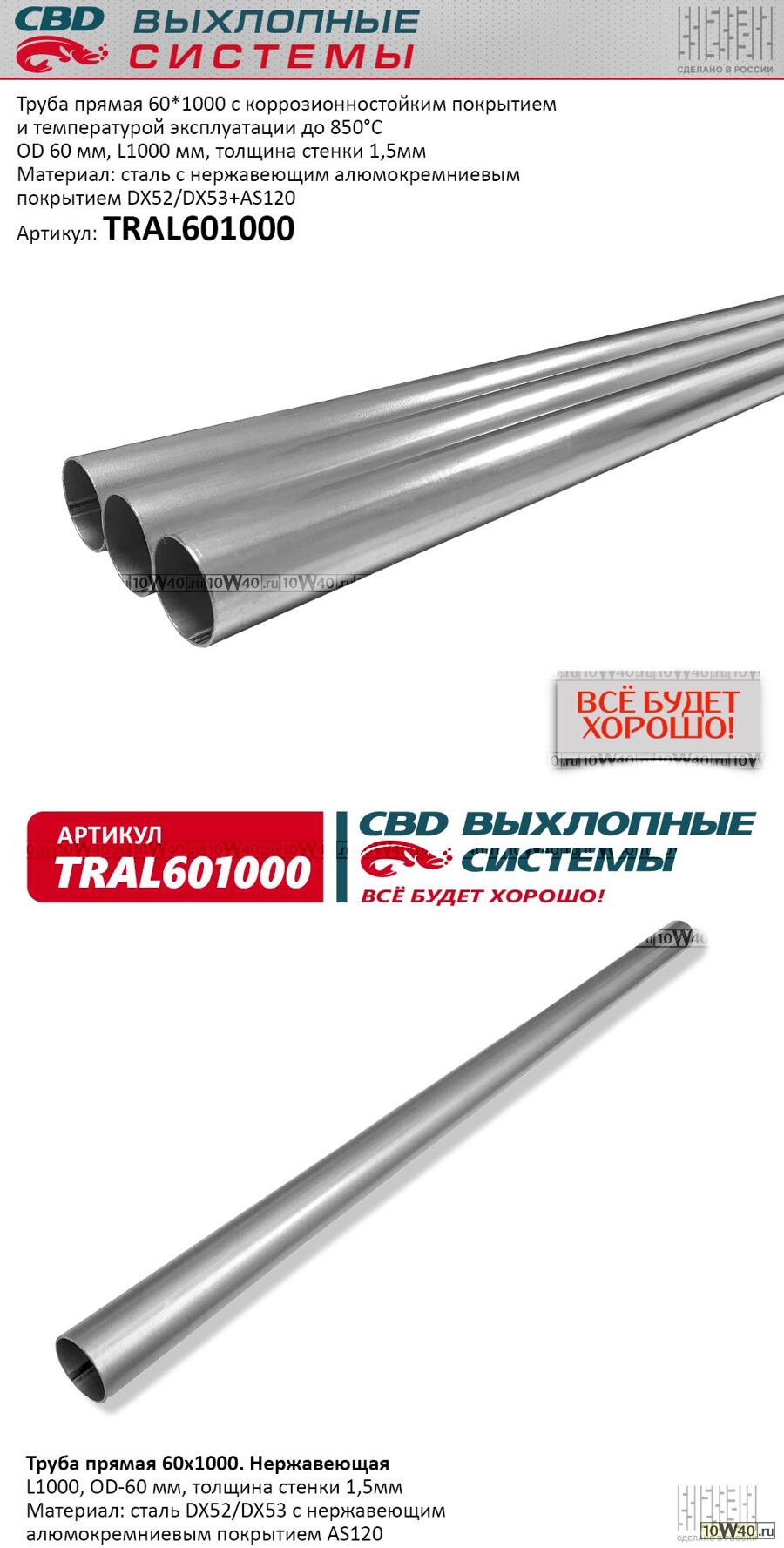 | CBD | tral601000 | | труба прямая 60*1000 (d60 l1000) из нерж алюм стали. cbd. tral601000 |