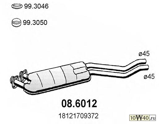Описание SH Артикул MK3662506203 Серийный номер 08.6012 Система выпуска ОГ для среднего глушителя выхлопных газов