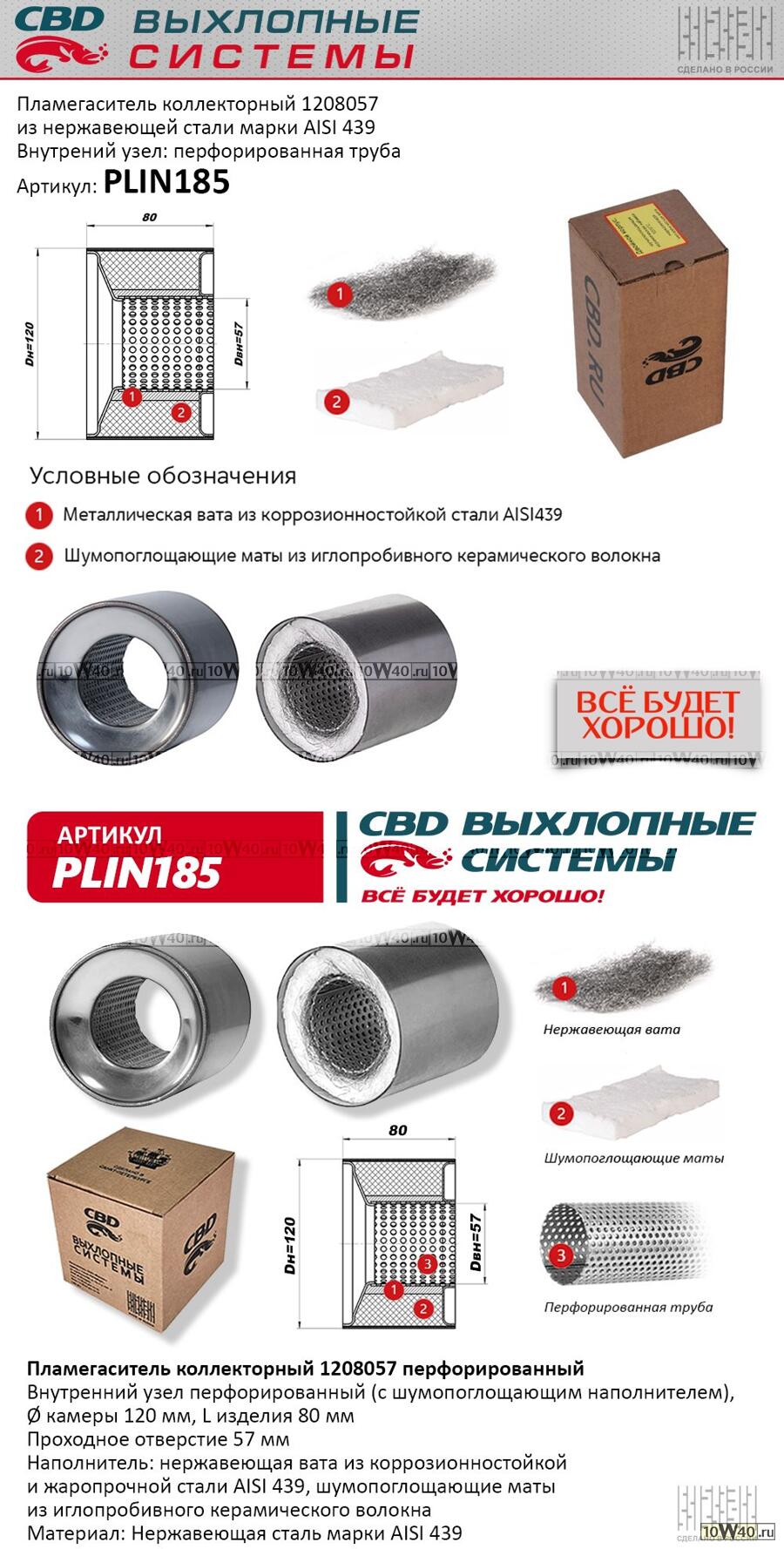 | CBD | plin185 | | пламегаситель коллекторный 1208057 перфорированный из нерж.стали. cbd. plin185 |