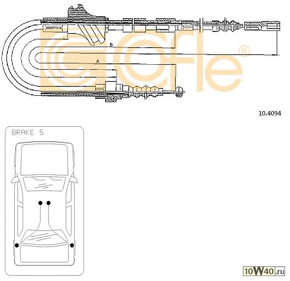 | COFLE | 92.10.4094 | |  | Трос стояночного тормоза задн AUDI 100 all (дисковые тормоза) ABS mod-1.6-2.0-2.3-2.6-2.8-2.4DS-2.5TDS 92- |