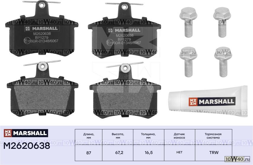 | MARSHALL | M2620638 | | ТОРМ. КОЛОДКИ ДИСКОВЫЕ ЗАДН. AUDI 80 83- / 90 85- / 100 77- / A4 (B5) 94- / A6 (C4) 94- / A8 (D2) 94- (M2620638) |