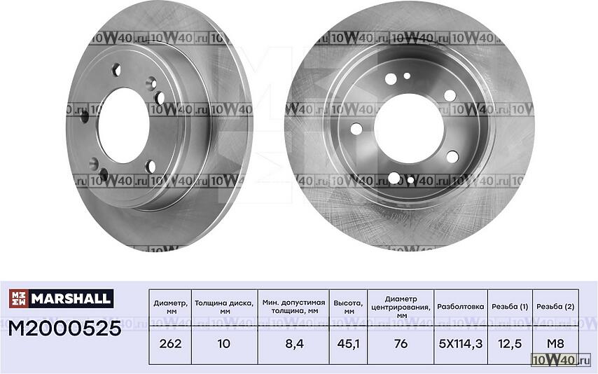 ТОРМОЗНОЙ ДИСК ЗАДН. CRETA (1.6) 16- / ELANTRA V, VI 11- CEED II 12- / SOUL II, III 14- (M2000525)