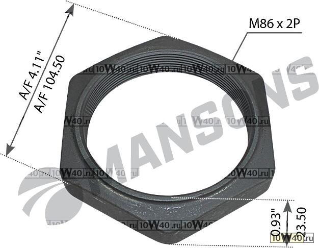 | MANSONS | 800086 | | гайка трансмиссии m86x2x23,5мм sw104\ volvo fh12 / fh16 / fm9 / fm10 / fm12 |