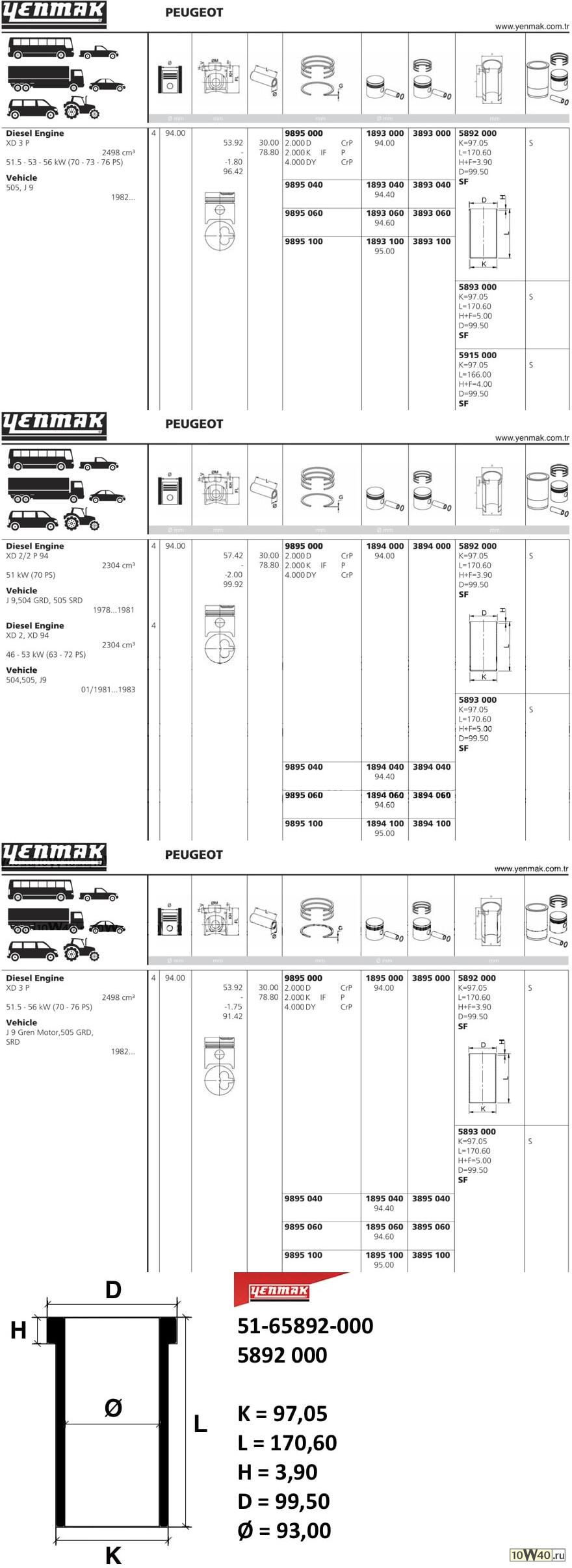 | YENMAK | 51-65892-000 | | Гильза цилиндра Ford 2.3D, 2.5D/TD =94mm |