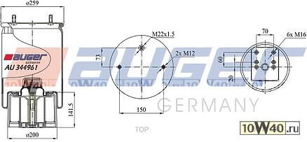 | AUGER | AU 344961-KP | | пневмоподушка со стаканом 2шп. м12 1штуцер м22x1.5 поршень пластик \ bpw 30k |