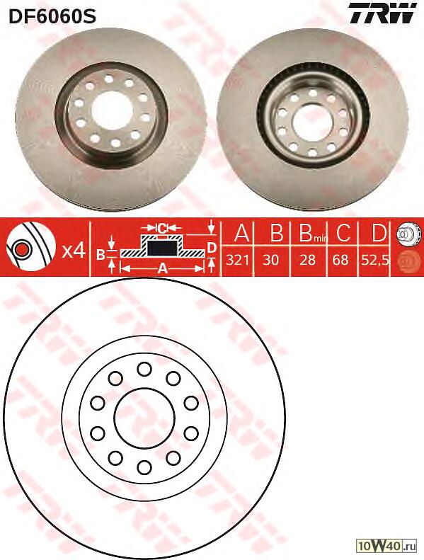 | TRW | DF6060S | ТОРМОЗНОЙ ДИСК ПЕРЕДНИЙ |