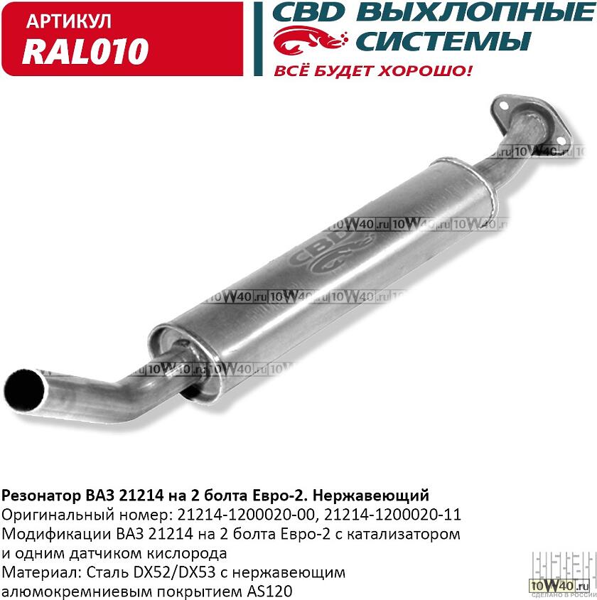 | CBD | ral010 | | резонатор ваз 21214 до 08 г. на 2 бол нерж сталь cbd. ral010 |