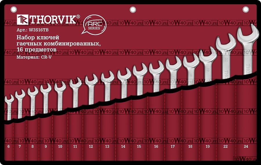| THORVIK | W3S16TB | | Набор ключей гаечных комбинированных серии ARC в сумке, 6-24 мм, 16 предметов |