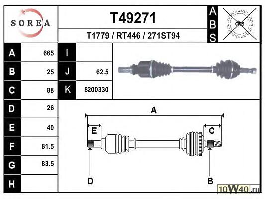 Описание SH Артикул FZ3993227843 Штрих-код (EAN) 3596400242708 Страна (по штрих-коду) Франция Длина [мм] 665 Внешнее зубчатое соединение со стороны колеса 25 Диаметр 1 [мм] 83,5 Внешнее зубчатое соединение со стороны дифференциала 26 диаметр 2 (мм) 81,5