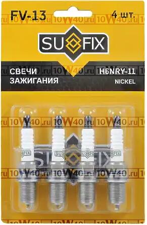 | SUFIX | FV-13 | | Свеча зажигания H6NRY-11 FORD Escort 1.4-1.6 86-95 / Fiesta II-III 1.4 86-95 / Orion II 1.4-1.6 86-93 / Scorpio II 2.9 95-98 / Sierra 1.6 89-93 / Transit 2.9 91-94 / Probe 2.0 93-98, LADA 110 FV-13 |