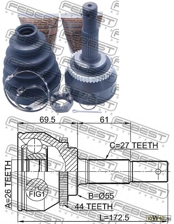| FEBEST | 0210-N16A44 | |  | ШРУС НАРУЖНЫЙ 26X55X27 NIS ALMERA N16 (UKP) 2000-2006 |