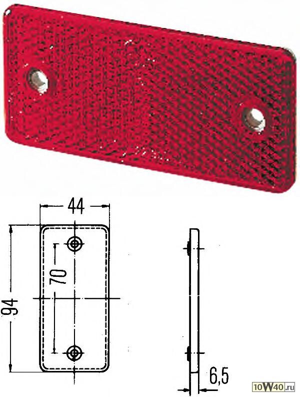 Описание SH | световозвращатель красн. прямоуг. 44x94 крепл. двумя винтами \iveco,kogel,krone,sch |