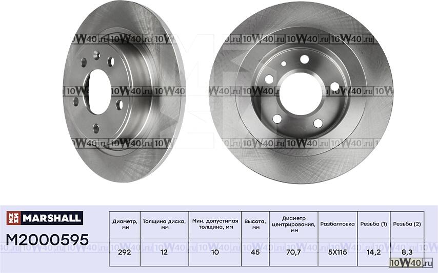 | MARSHALL | M2000595 | | ТОРМОЗНОЙ ДИСК ЗАДН. CHEVROLET CRUZE I 09- OPEL ASTRA J 09- / ZAFIRA C 11- (M2000595) |