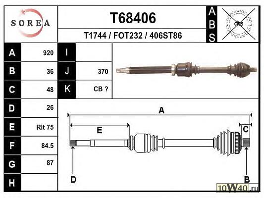 | EAI | T68406 | привод правый 920mm\ ford c-max / focus |