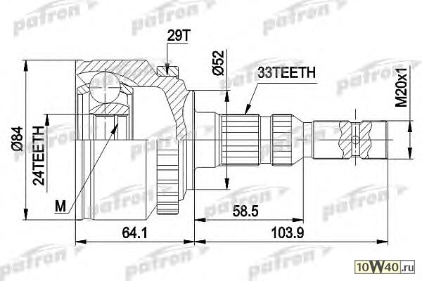 | PATRON | PCV1452 | |  | ШРУС наружн к-кт 33x52x24 ABS:29T OPEL: CORSA C 1.7CDTI 00-, MERIVA 1.7CDTI 03- |
