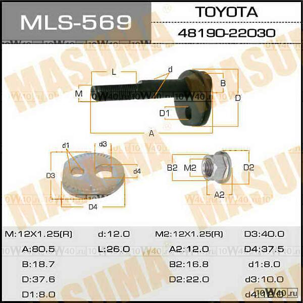 | MASUMA | MLS-569 | | болт с эксцентрикомв сборе\ toyota mark 2 gx 100 96-01 |