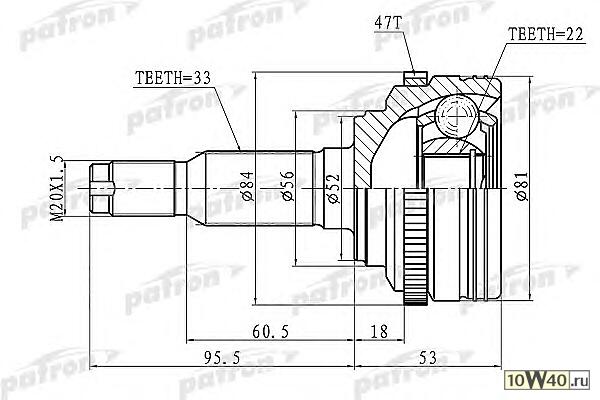 | Описание WM | ШРУС наружн 33x52x22 ABS:47T Chevrolet: Lacetti 1.6 05>, Daewoo: Nubira 1.8 03> |