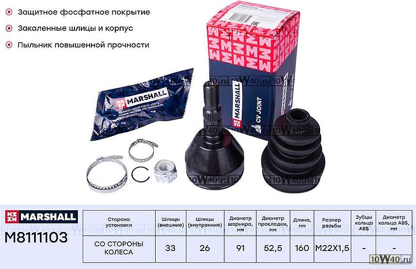 | MARSHALL | M8111103 | | шрус наружный к-кт\ opel astra h / zafira b 2.0t / 1.9cdti 04> |