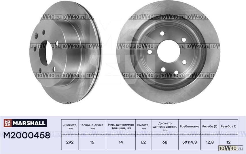 | MARSHALL | M2000458 | | Тормозной диск задн. Nissan Qashqai I 07- Juke I 10- X-Trail I II 01- Renault Koleos I 08- M2000458 |