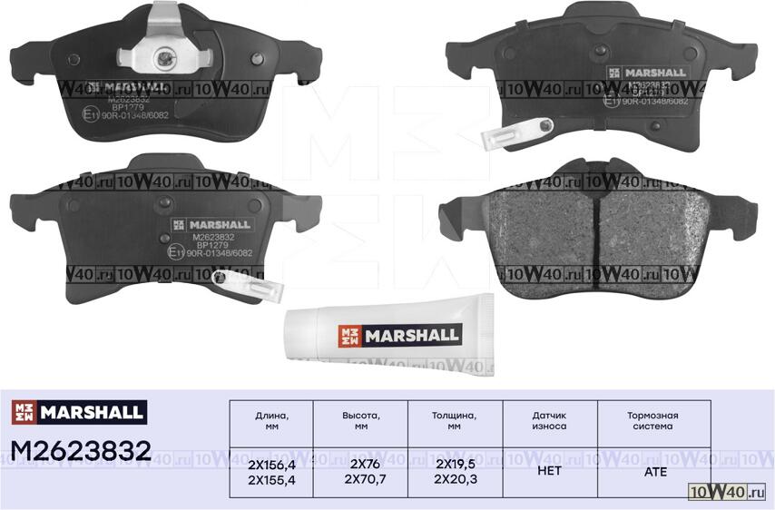 | MARSHALL | M2623832 | | ТОРМ. КОЛОДКИ ДИСКОВЫЕ ПЕРЕДН. OPEL ASTRA H 04- / CORSA C, D, E 03- / MERIVA A, B 03- / ZAFIRA B 05- (M2623832) |