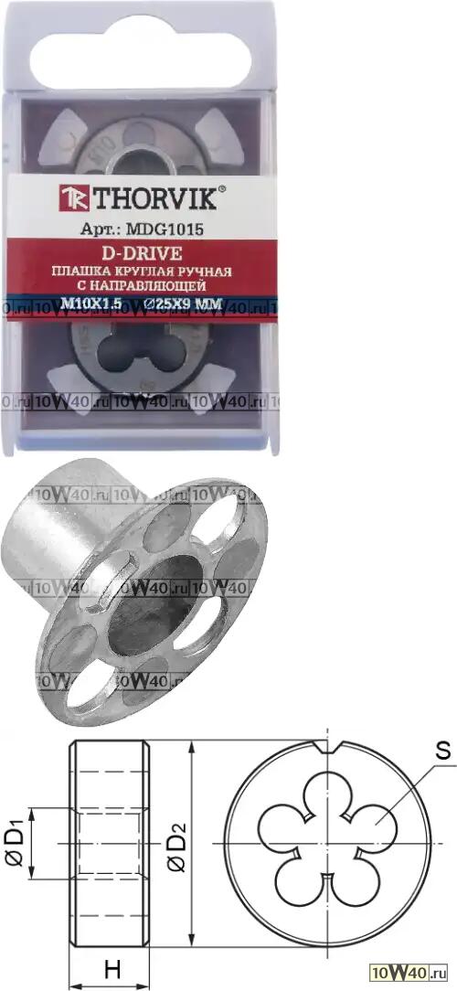 плашка d-drive круглая ручная с направляющей в наборе м8х1.25, hss, ф25х9 мм