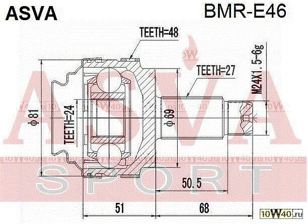 ШРУС НАРУЖНЫЙ ЗАДНИЙ 24X69X27